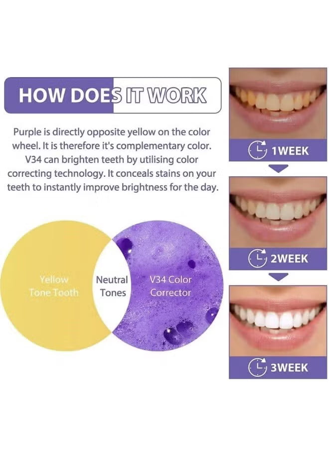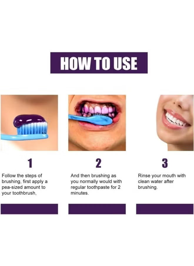 اللون البنفسجي يعاكس الأصفر، فيساعد على تفتيح الأسنان وإزالة البقع الصفراء بفعالية.